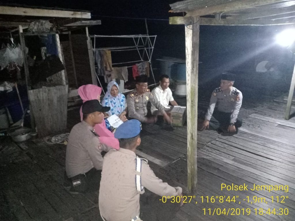 Kamis 11 April 2019 , sekitar pukul 18.44 wita, pihak Polsek Jempang Resor Kutai Barat beserta Ibu Bhayangkari melaksanakan giat Jumat berbagi, mengunjungi salah seorang masyarakat yang tinggal di Rumah Rakit dan dilihat kurang mampu yaitu Bpk Muhlis ( 41 Thn ) diwilayah Kampung Tanjung Isuy Kecamatan Jempang Kabupaten Kutai Batat.