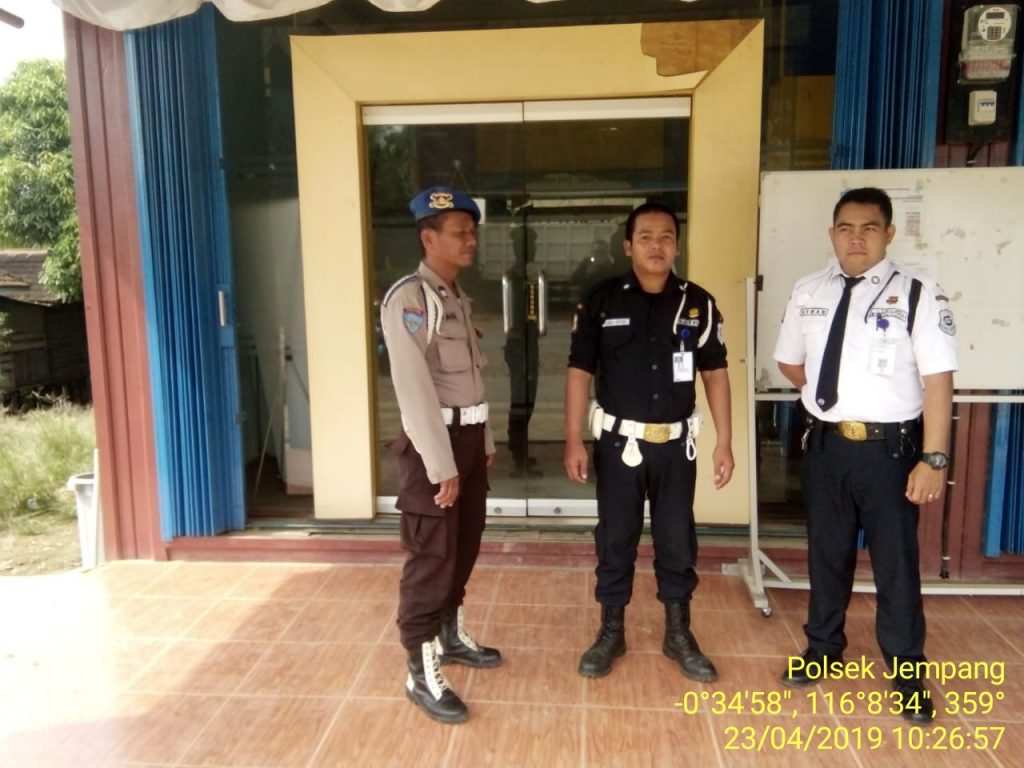 Dalam Patroli hari ini Selasa tanggal 23 April 2019, anggota Patroli Polsek Jempang berpatroli diobvit Bank BPD KCP Muara Tae Kamp. Muara Tae Kec. Jempang dimana di Bank BRI terdapat mesin ATM tempat bertransaksi uang oleh karena itu anggota Polsek kontrol/cek dijam-jam rawan serta menemui Satpam Bank untuk selalu waspada dan melakukan pengecekan disekitar area Bank BRI apabila menemukan hal-hal yang mencurigakan segera hubungi kantor Polsek Jempang.