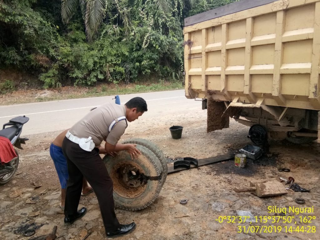 Menindak lanjuti Perintah pimpinan Briptu Agus yang menjabat sebagai Banit Provos di Polsek Siluq Ngurai bersama anggota jaga melaksanakan patroli di seputaran kamp. Muhur Dalam pelaksanaan patroli tersebut Briptu Agus melihat 1 unit dum truck yang sedang parkir setelah di hampiri oleh anggota patroli ternyata dum truck tersebut sedang mengalai pecah ban dengan sigap anggota patroli membantu pemilik mobil dum truck untuk menganti ban dan mengaman kan arus lalulintas agar tidak mengalami kemacetan. Dalam kesempatan tersebut seseorang yang benama Bpk. Abbas mengucapkan terima kasih atas bantuan yang di berikan oleh anggota polri khusnya anggota polsek siluq ngurai.