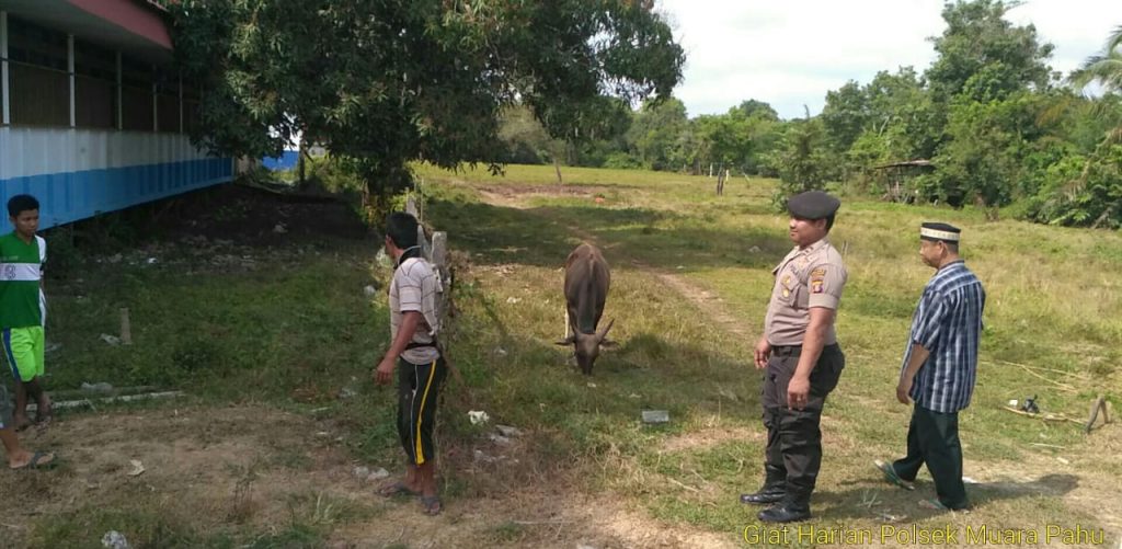 POLSEK MUARA PAHU LAKSANAKAN PENGAMANAN PENYEMBELIHAN HEWAN QURBAN SERTA BERIKAN PESAN KAMTIBMAS KEPADA WARGA