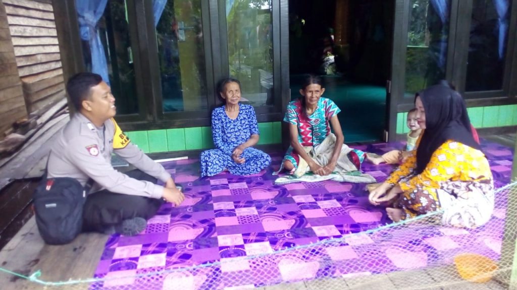 Bhabinkamtibmas Desa Minta Kecamatan Penyinggahan Brigpol Fikri Sapriadi berkeliling ke desa binaan dan menyambangi rumah-rumah warga.