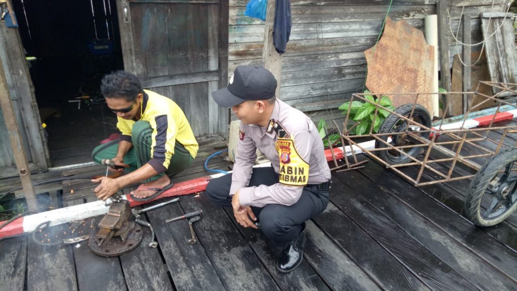 Bhabinkamtibmas Desa Tanjung Haur Kecamatan Penyinggahan Bripda Arman berkeliling ke desa binaan dan menyambangi rumah-rumah warga, Rabu (14/8/2019).