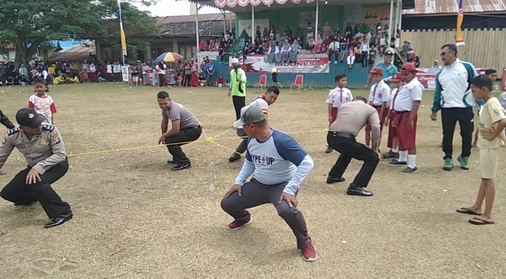 Tidak hanya warga dan pelajar sekolah saja yang mengikuti lomba tersebut, namun anggota kepolisian sektor Muara Pahu juga turut bergabung dalam beberapa perlombaan.