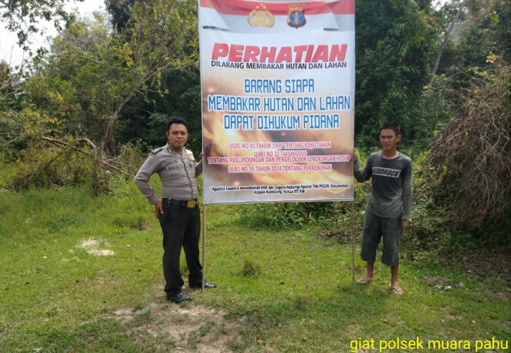 Dalam kesempatan tersebut, Kapolsek Muara Pahu menjelaskan, Kebakaran Hutan dan lahan merupakan salah satu bentuk kejahatan terhadap lingkungan. “Kami telah memasang banner dan spanduk dengan tujuan menumbuhkan kesadaran masyarakat, untuk bersama-sama melawan pembakaran hutan dan lahan,” ujar Bapak Kapolsek Muara Pahu.