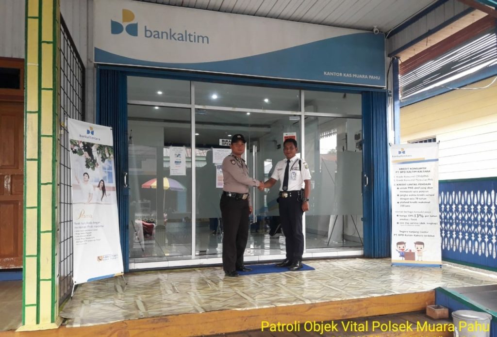 Pada hari ini Jum’at ( 13-09-2018 ) sekira jam 10.00 wita petugas patroli melaksanakan Patroli ke Kantor Kas Bank BPD Kaltim yang terletak di RT 05 kampung Tanjung Laong kec. Muara Pahu. Aipda Taufiq H dalam patroli dialogisnya kali ini adalah untuk berkordinasi dengan security mengenai kamtibmas di seputaran wilayah Kantor BPD serta tak lupa petugas juga memberikan himbauan kamtibmas yaitu antara lain :