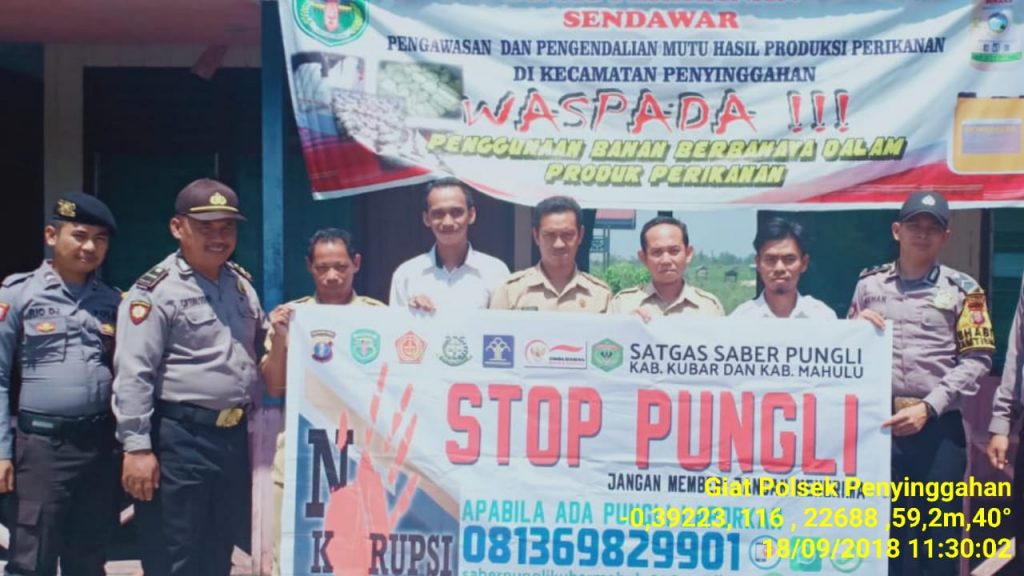 Penyinggahan – Untuk mensukseskan Program Saber Pungli di wilayah Kutai Barat khususnya di wilayah hukum Kecamatan Penyinggahan jajaran Polres Kutai Barat, Polsek Penyinggahan melaksanakan imbauan dan sosialisasi terkait gerakan Sapu Bersih Pungutan Liar (Saber Pungli) di Kantor Pertanian kec. Penyinggahan, Rabu (18/09/2019).