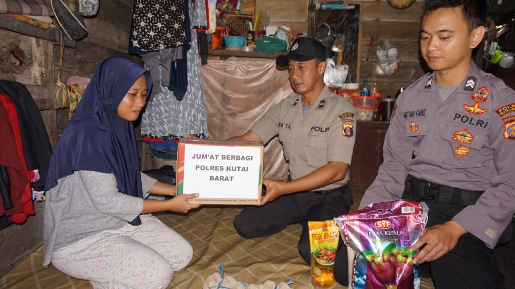 POLRES KUTAI BARAT BERIKAN BANTUAN KEPADA WARGA YANG KURANG MAMPU DENGAN CARA KEGIATAN JUM’AT BERBAGI