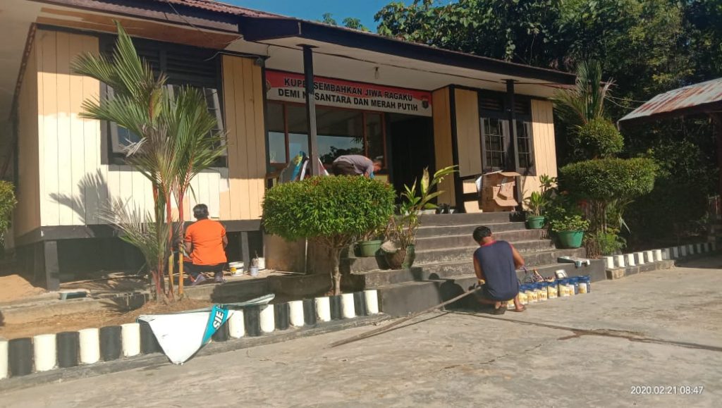 Sendawar- Memberikan kesan indah, sejuk, dan bersih para personel Polsek Damai melakukan beberapa perubahan terhadap Makonya, dengan dipimpin oleh PS. Kapolsek Damai Iptu FransTarukallo membersihkan, serta mengecat pagar dan beberapa tempat yang sudah terlihat kusam. Jum’at (21/02/20).