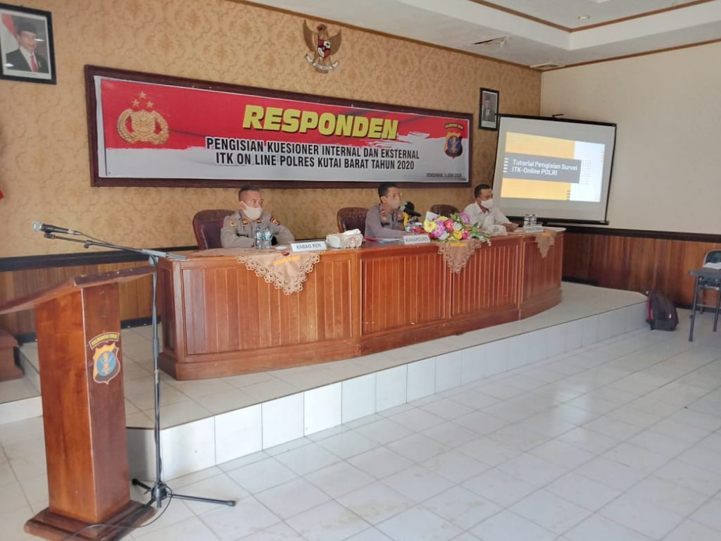 Kutai Barat – Polres Kutai Barat hadirkan beberapa responden eksternal untuk pengisian kuesioner aplikasi Indeks Tata Kelora Polri (ITK). Responden yang dihadirkan dari perwakilan beberapa unsur tersebut diberikan pertanyaan seputar pelayanan yang ada di wilayah hukum Polres Kutai Barat.
