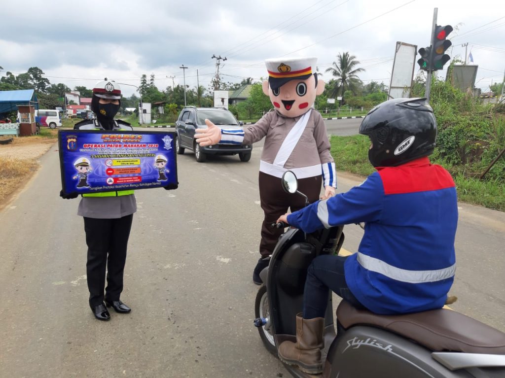Kutai Barat – Menggunakan badut polisi Satuan Lalu Lintas Polres Kutai Barat melalui unit Dikyasanya, senin (27/07/20) memberikan sosialisasi, himbauan kampanye keselamatan berlalu lintas serta mensoisalisasikan adaptasi kebiasaan baru dalam menghadapi pandemi covid 19.