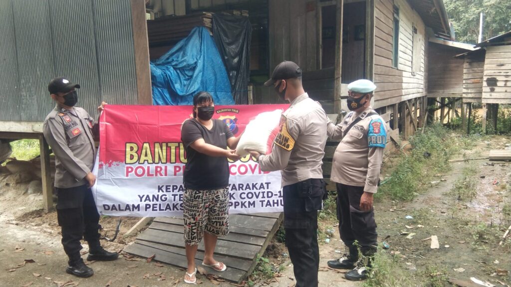 Anggota Polsek Muara Lawa melaksanakan penyaluran bantuan sosial dari Polri bagi masyarakat kurang mampu yang terdampak Covid19 di masa PPKM ini dengan menyalurkan bantuan sosial berupa paket sembako dari Polri.