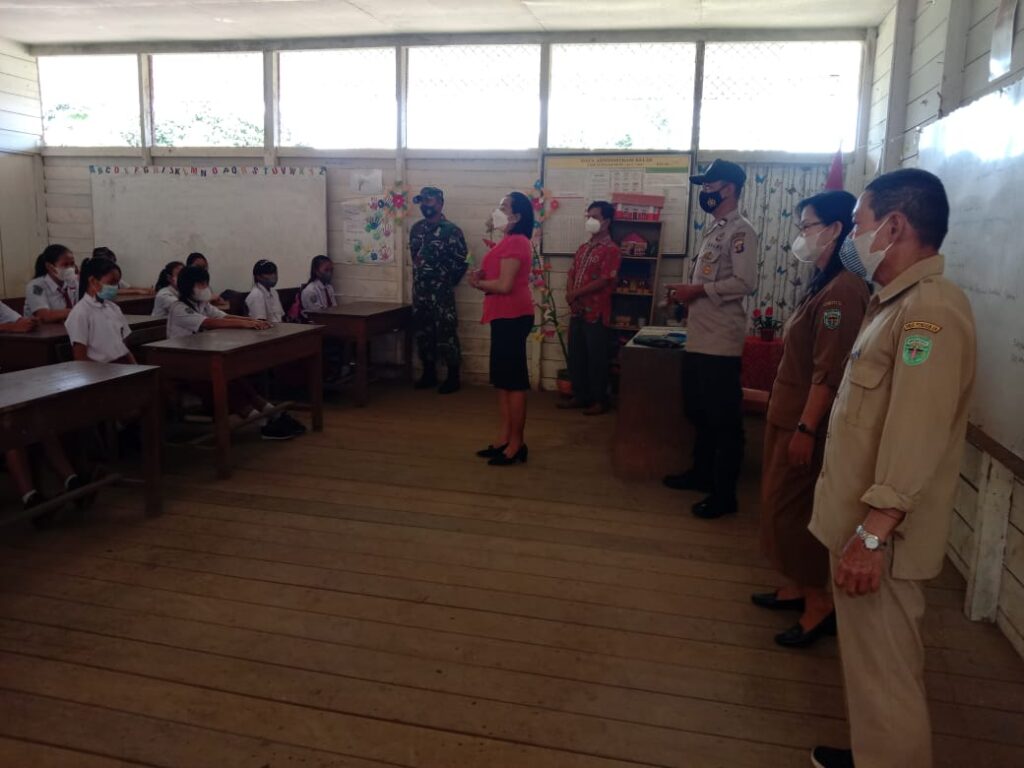 Linggang Bigung –Polsek Barong Tongkok menggelar kegiatan monitoring di sekolah yang menyelenggarakan Pembelajaran Tatap Muka dapat Dilaksanakan dengan ketentuan dengan Prokes Ketat serta kawasan patuh protokol kesehatan.