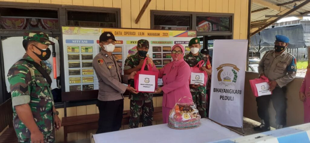 Kepedulian Ranting Bhayangkari Muara Lawa, Memberikan Bingkisan kepada Petugas Jaga Pos Pam Ops Lilin Mahakam 2021