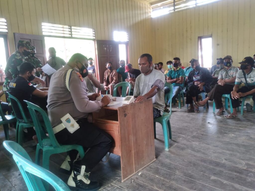 Dukung Percepatan Vaksinasi Covid-19 di Wilayah Perbatasan Kaltim-Kalteng, Kapolsek Bentian Besar Pimpin Pengamanan dan Pendampingan Secara Humanis