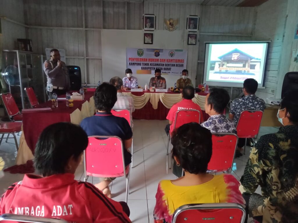 BENTIAN – Kapolsek Bentian Besar AKP Andarias Tato’ Paladang, S.H. bersama Kanit Propam Aipda Mohammad Jais memberikan Penyuluhan Hukum kepada Warga Perbatasan Kaltim-Kalteng yang diselenggarakan oleh Pemerintah Kampung Tende Kecamatan Bentian Besar Kabupaten Kutai Barat. Selasa (8/2/2022).