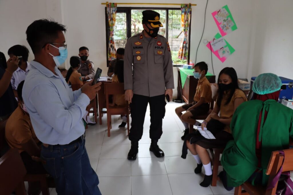 Setibanya di lokasi, Waka Polres langsung bertatap muka dengan para siswa-siswi saat melakukan vaksinasi.