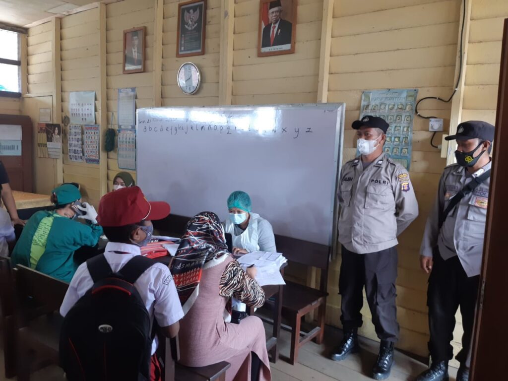 Polsek Melak Amankan Vaksinasi Covid-19 Anak Usia 6-11 Tahun di SDN 001 Melak Kelurahan Melak Ilir