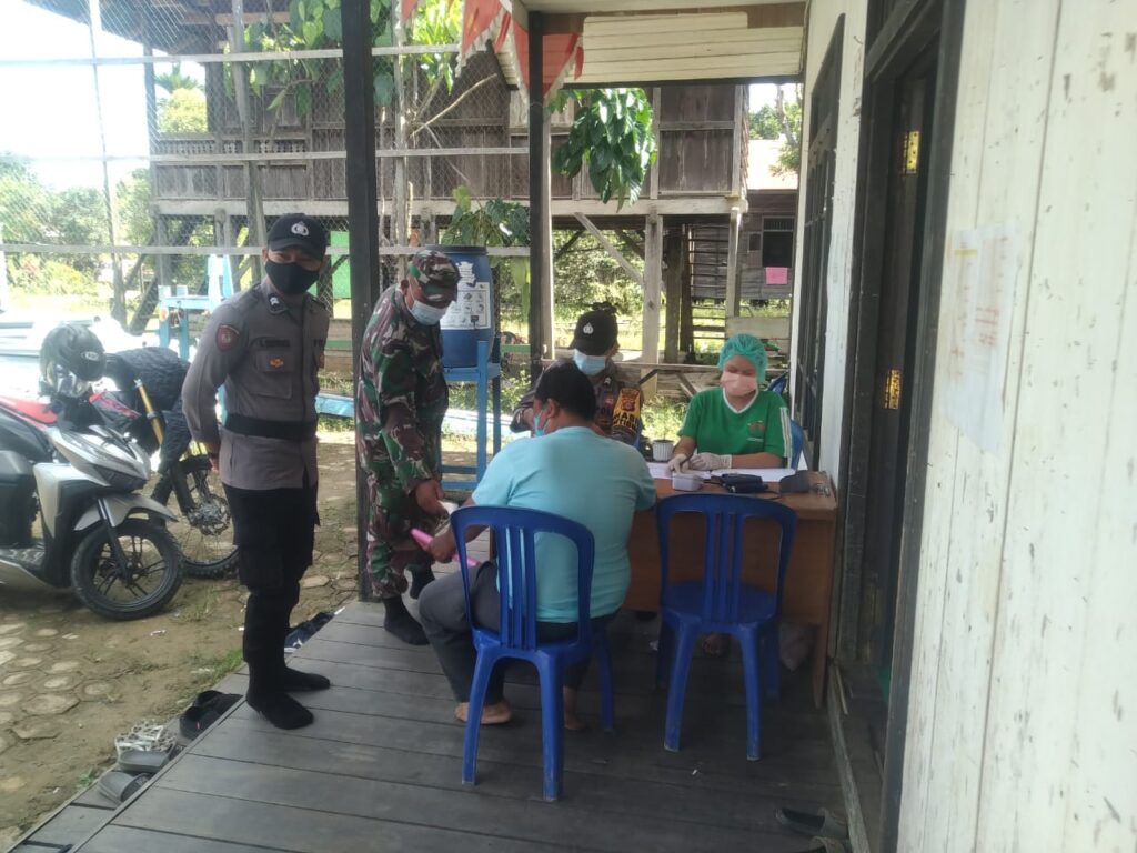 BENTIAN – Dalam rangka memberikan rasa nyaman para tenaga kesehatan yang melaksanakan vaksinasi, jajaran Koramil 0912-11 dan Polsek Bentian Besar Polres Kutai Barat melaksanakan pengamanan giat vaksinasi massal yang digelar oleh UPT. Puskesmas Dilang Puti bertempat di BPU Kampung Suakong Kecamatan Bentian Besar Kabupaten Kutai Barat, Jumat (04/3/2022).