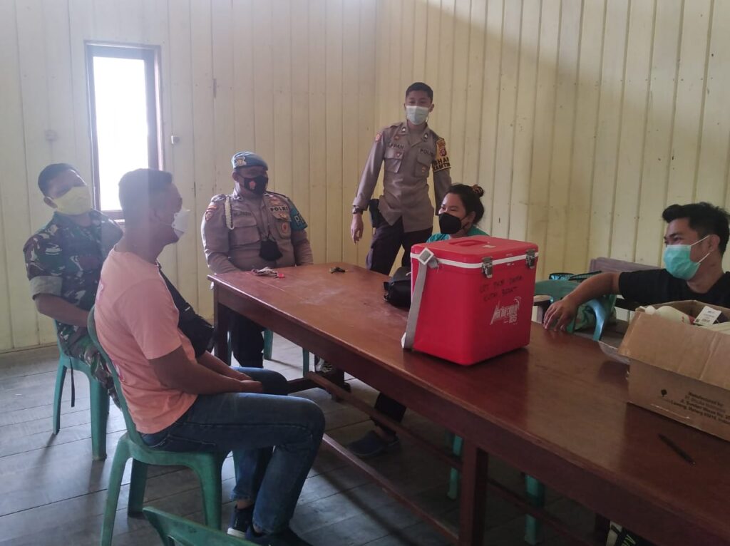 Kanit Propam Bersama Bhabinkamtibmas Polsek Bentian Besar Lakukan Rapat Koordinasi Lintas Sektoral Pengendalian Covid-19 dan Pencapaian Vaksinasi Lansia Tingkat Kecamatan