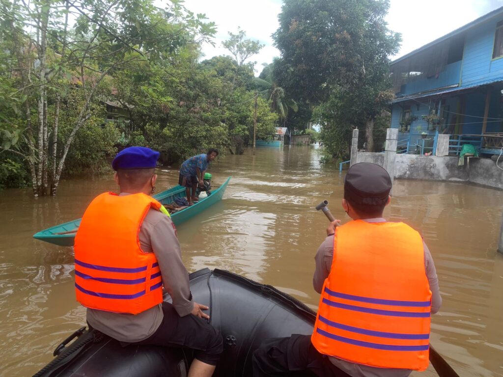 MELAK – Mewaspadai potensi banjir akibat curah hujan yang begitu tinggi diwilayah hukumnya, Kapolsek Melak IPTU Aluwih bersama anggotanya dan dibantu oleh personel Sat Polairud Polres Kubar secara langsung melakukan patroli pemantauan dan pengecekan debit air di sejumlah titik tempat/daerah genangan hujan rawan banjir yang menjadi permukiman warga, Rabu (9/3/2022).