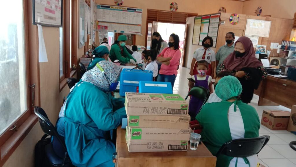 Melak – Demi keamanan dan kelancaran kegiatan vaksinasi massal covid-19 kepada anak usia 6-11 tahun, anggota Polsek Melak bersama Koramil Melak kini tengah melakukan pengamanan vaksinasi massal covid-19 yang dilaksanakan di SDN 007 Sekolaq Darat, Dusun Royoq Jalan Sendawar Raya RT. 003 Kampung Sekolaq Oday Kecamatan Sekolaq Darat Kabupaten Kubar, Senin (14/3/2022) pukul 08.00 s/d selesai.