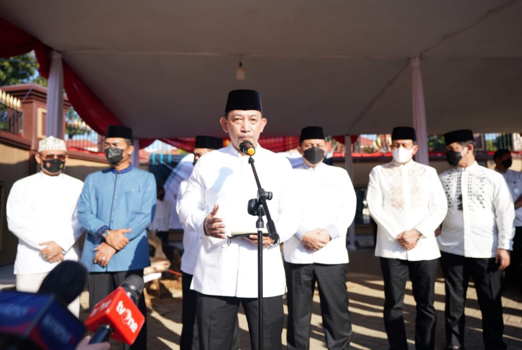 Jakarta – Kapolri Jenderal Listyo Sigit Prabowo secara simbolik menyerahkan 112 hewan kurban sapi dalam rangka memperingati Hari Raya Idul Adha di Lapangan Bhayangkara Mabes Polri, Jakarta Selatan, Minggu (10/7/2022).