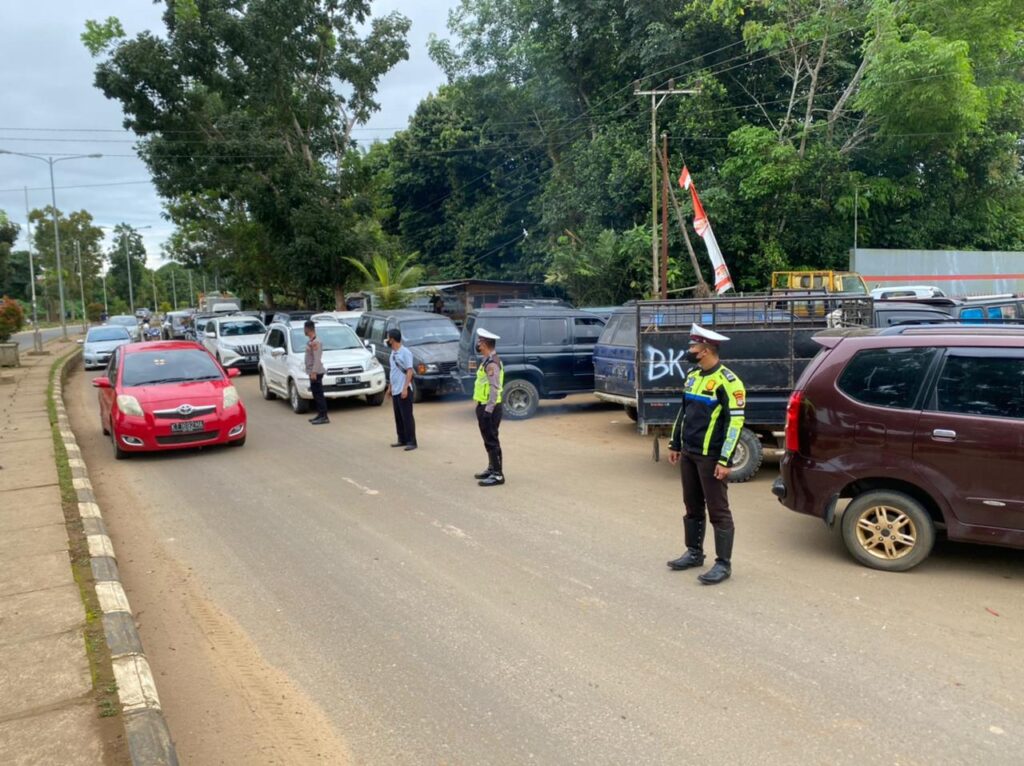 HINDARI TERJADI ANTRIAN PANJANG DI SPBU, PERSONEL POLRES KUBAR MELAKSANAKAN PENGATURAN LALU LINTAS DI DEPAN SPBU