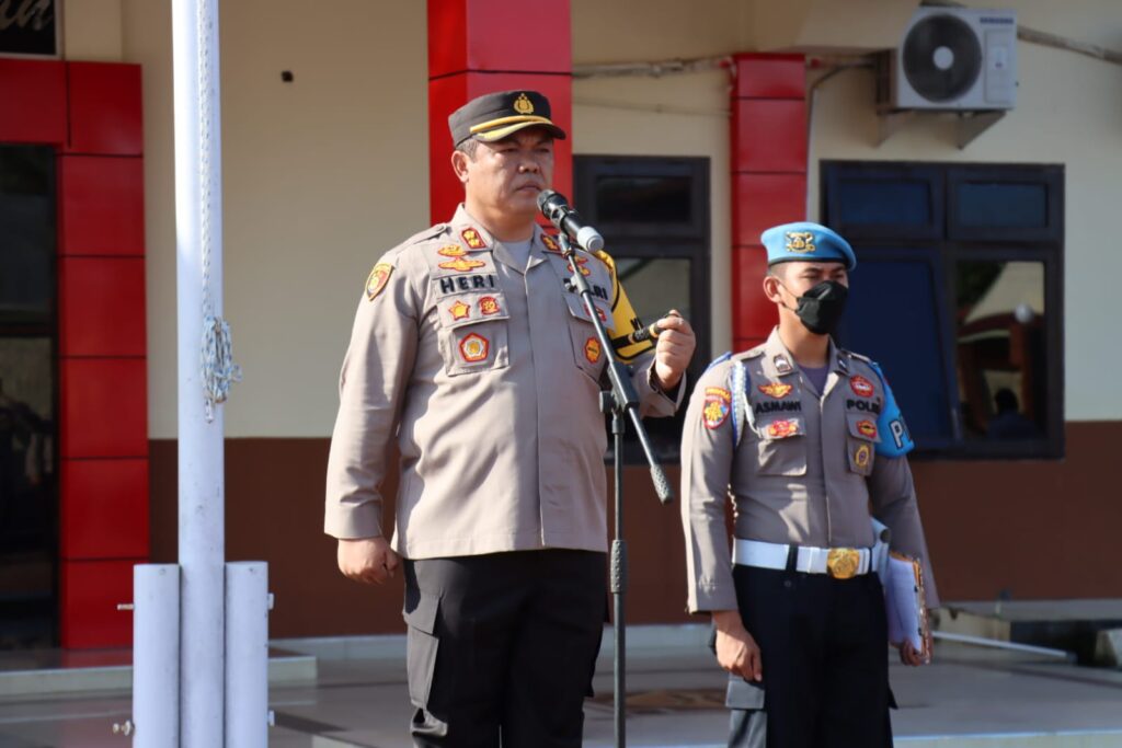 Dalam hal ini, Kapolres Kutai Barat AKBP Heri Rusyaman, S.I.K.,M.H., memimpin apel pagi yang dilaksanakan di lapangan Mako Polres Kutai Barat. Senin (12/9/2022).