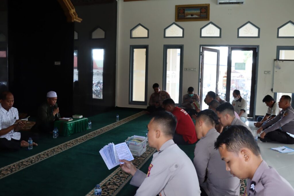 Kutai Barat – Program Pembinaan Rohani dan Mental (Binrohtal) yang dilaksanakan Polres Kutai Barat rutin setiap hari kamis pagi setelah pelaksanaan apel, hal ini diharapkan dapat membentuk karakter anggota Polri khususnya Polres Kutai Barat yang religius, Kamis pagi (28/07/22).