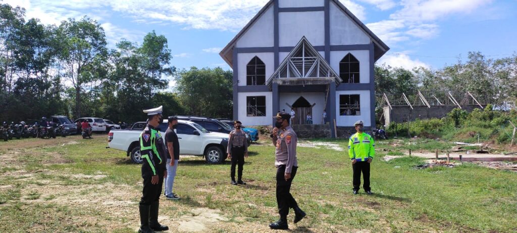 Kutai Barat – Minggu pagi umat kristiani Kabupaten Kutai Barat melaksanakan kegiatan ibadah, untuk menjaga keamanan dan ketertiban Polres Kutai Barat dan jajaran Polsek-Polsek menerjunkan personelnya untuk melaksanakan pengamanan kegiatan ibadah tersebut, Minggu (25/9/22) pagi.
