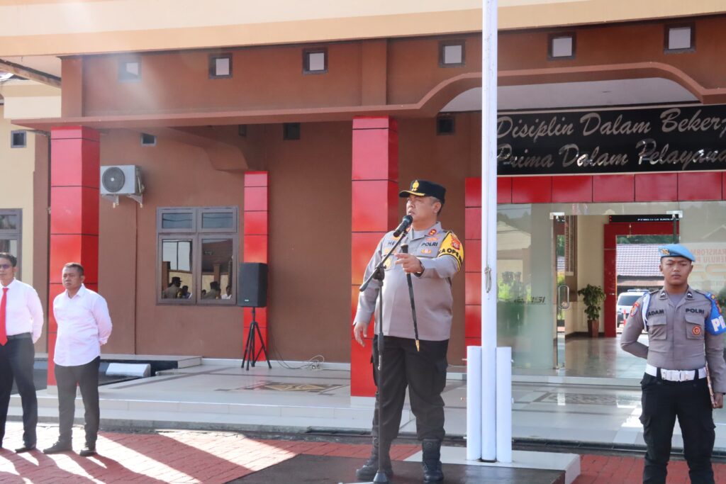 Kapolres Kubar Beri Ucapan Terima Kasih Kepada Personel Polres Kubar Saat Pam Kunker Presiden Jokowi Ke Kab. Kutai Barat
