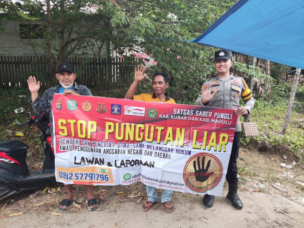 Kapolres Kutai Barat AKBP Heri Rusyaman, S.I.K, M.H, melalui Kapolsek Jempang IPTU Sunarto, SH Personel Polsek menyampaikan bahwa pungutan liar tidak dibenarkan, dan juga menjelaskan jika dari pungutan liar juga ada sangsi hukum bagi yang memberi maupun bagi yang menerima,” ucap Kapolsek.