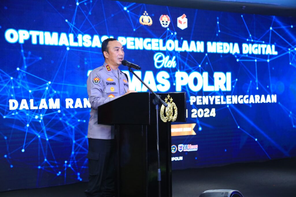 Kadiv Humas Polri Irjen. Pol. Sandi Nugroho dalam sambutannya menerangkan bahwa tantangan pemilu kali ini yang tidak mudah menjadi kesadaran untuk terus memacu meningkatkan kemampuan pengelolaan digital di seluruh jajaran humas. Oleh karenanya, penting bagi semua pihak untuk bersama-sama menciptakan konten-konten positif di ruang digital demi mewujudkan pesat demokrasi yang sesungguhnya.