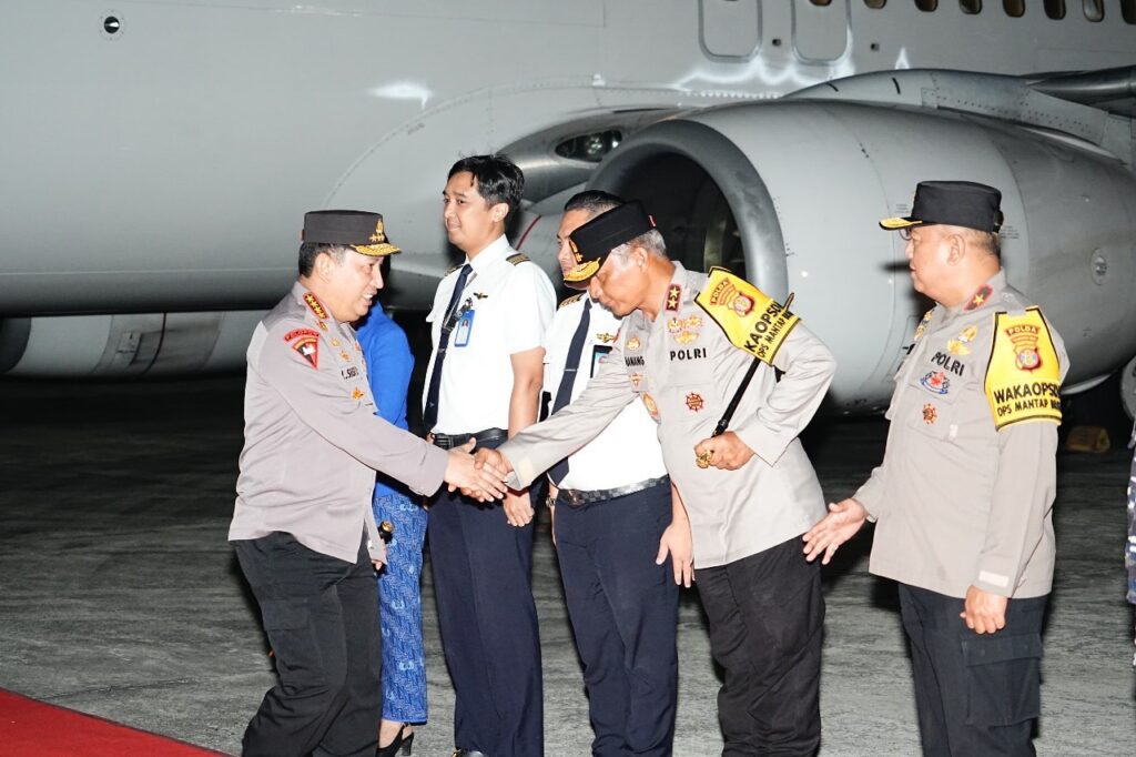 Balikpapan – Kedatangan Kapolri Jenderal Polisi Drs. Listyo Sigit Prabowo, M.Si., di Kota Balikpapan disambut langsung oleh Kapolda Kaltim Irjen Pol Drs. Nanang Avianto, M.Si., Selasa malam (16/1/2024).