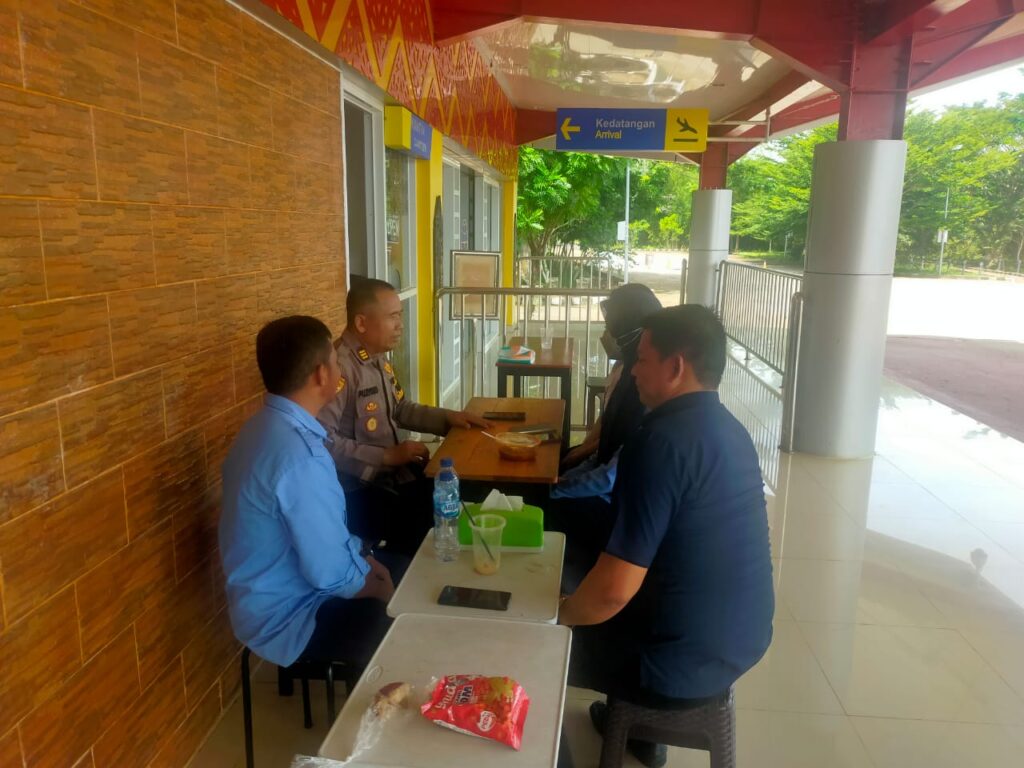 Kabag Ren Polres Kutai Barat dan anggota duduk sembari berdialog hangat dan bersilaturahmi bersama masyarakat yang di Bandara Melalan, Kab. Kutai Barat, tengah-tengah melakukan aktifitas nya.