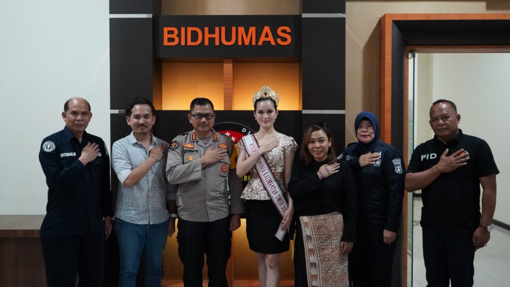Kori Aprilia Finalis Puteri Indonesia Zona Kaltim asal Kabupaten Kutai Barat tersebut berkunjung ke Polda Kaltim dan disambut hangat oleh Kabid Humas Polda Kaltim Kombes Pol Artanto, S.I.K., M.Si, Selasa (6/2/2024).