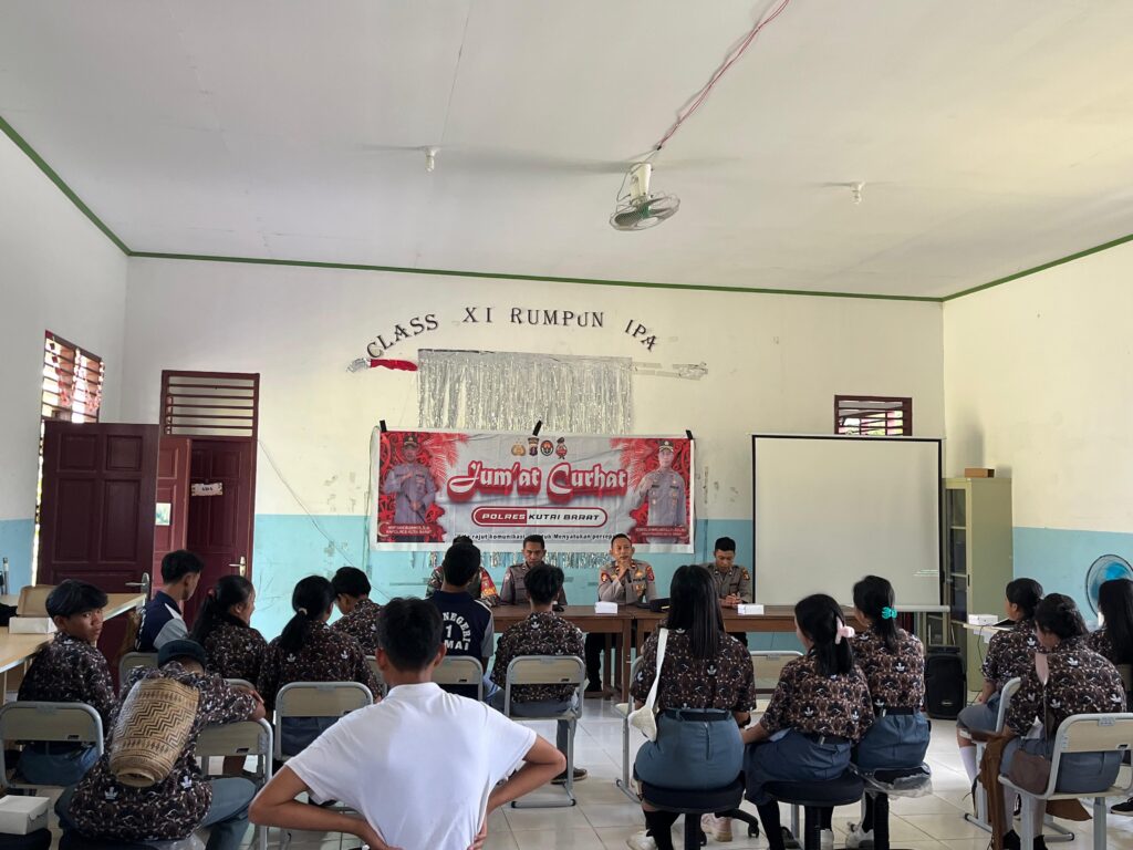 Kapolsek Damai beserta anggota Polsek Damau melaksanakan giat Jumat curhat di SMAN 1 Damai Kamp. Jengan Danum kec Damai Kab. Kutai Barat.