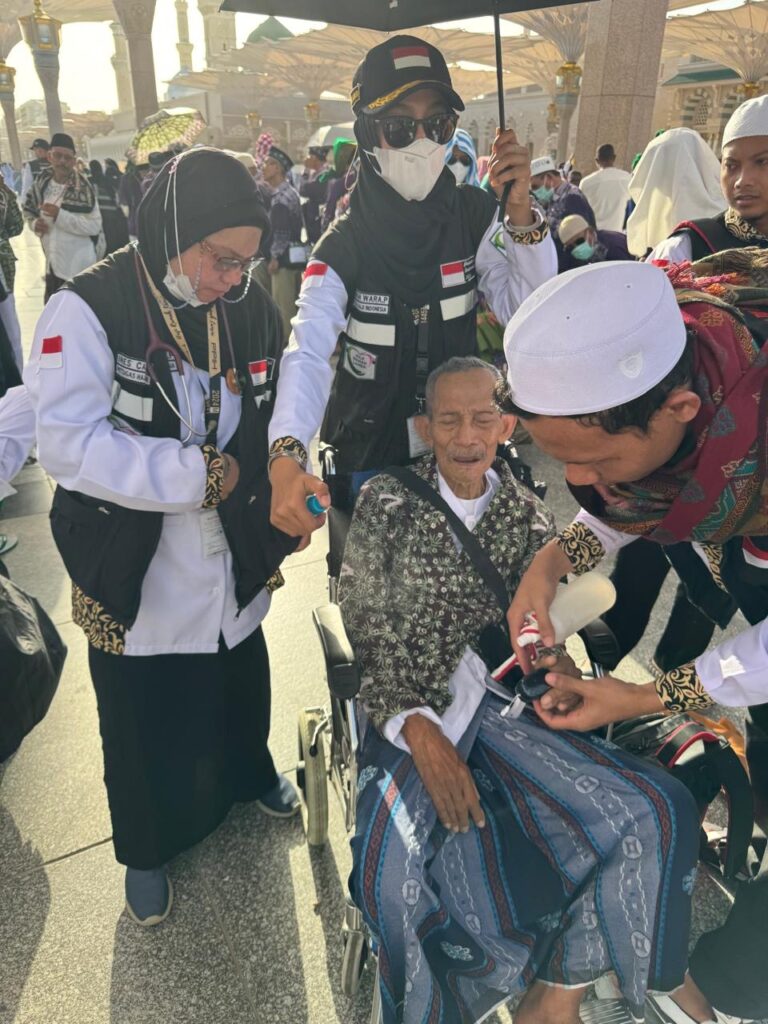 “Akhirnya kita minta istirahat dulu sambil kita pijat-pijat dulu. Sudah segar terus tim kesehatan Saudi datang dan bilang keadaan bapaknya sudah segar dan bisa masuk Raudah,” katanya.