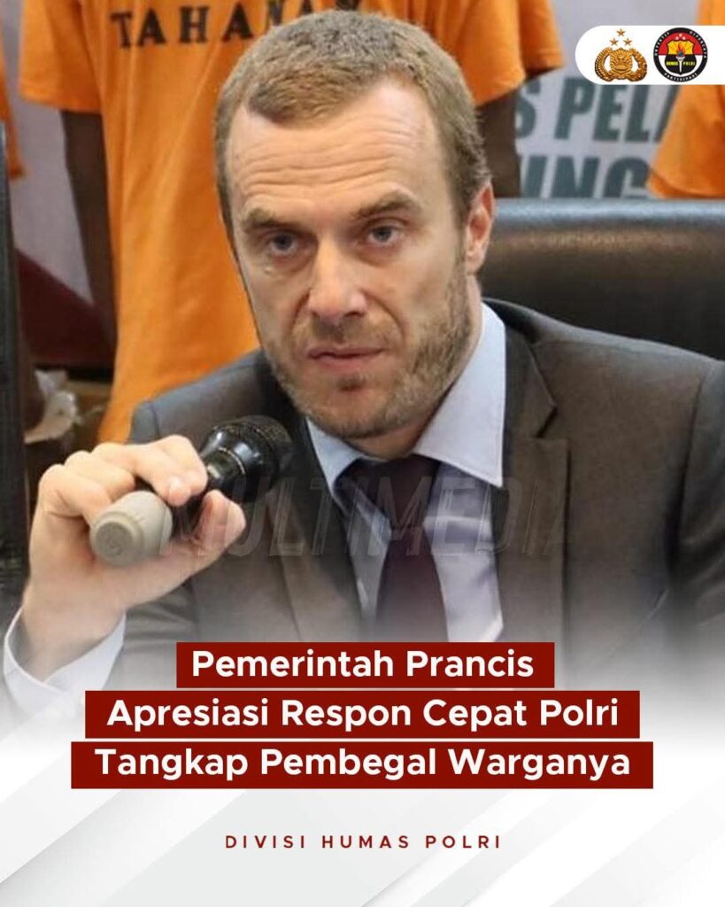 Atase Kepolisian Kedubes Prancis di Jakarta, Commandant De Police Chassot, mengapresiasi dan berterima kasih atas respons cepat Polres Pelabuhan Tanjung Priok dalam menangani kasus penjambretan yang menimpa warga Prancis, Marion Parent, dan anaknya di Pelabuhan Sunda Kelapa, Jakarta Utara. Kasus penjambretan terjadi pada 5 Maret 2025, ketika Marion dan anaknya diserang oleh pelaku yang menodongkan pisau dan merampas kamera. Dalam kasus itu, Polres Tanjung Priok berhasil menangkap 8 tersangka, termasuk 3 pelaku utama dan 4 penadah.