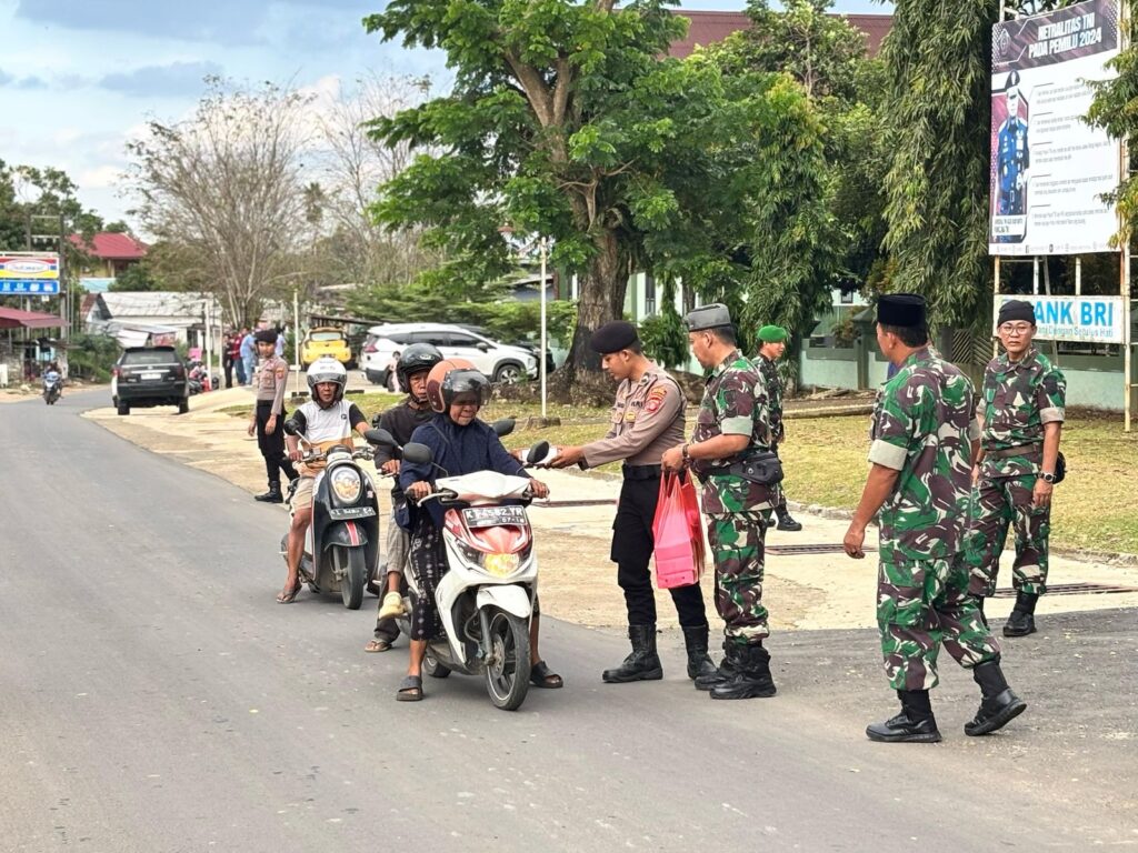 Wujud Sinergi TNI-Polri, Polres Kutai Barat dan Kodim 0912/Kubar Bagikan Takjil
