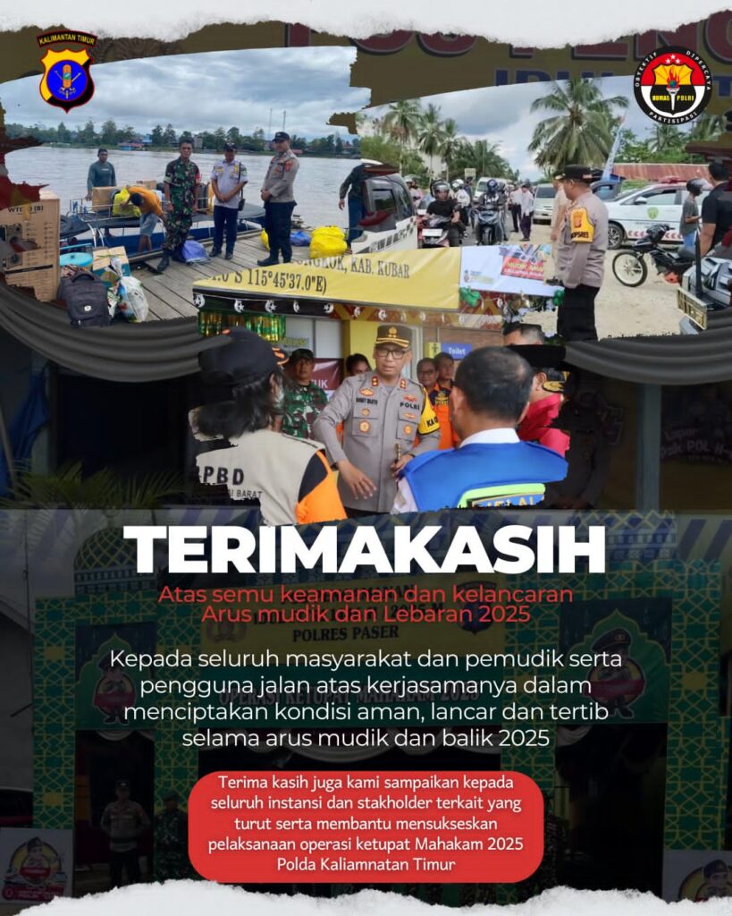Polres Kubar, Paser dan bersama Polda Kalimantan Timur mengapresiasi partisipasi aktif semua pihak dalam mensukseskan Operasi Ketupat Mahakam 2025.