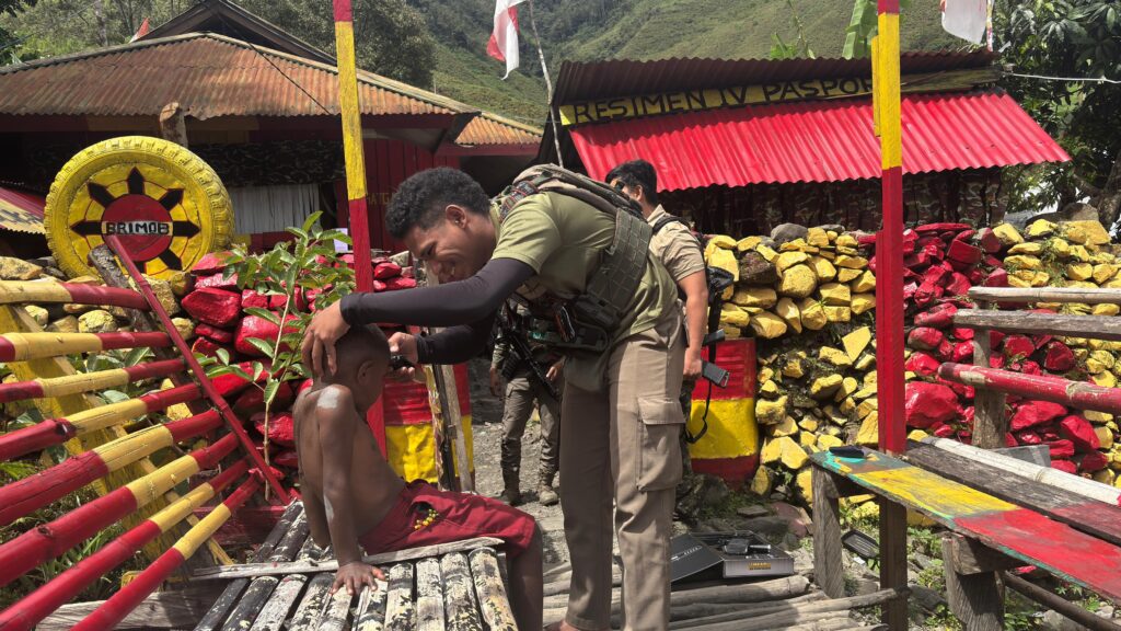 Puncak Jaya – Personel Satuan Tugas (Satgas) Tindak Operasi Damai Cartenz 2025 menggelar kegiatan sosial berupa layanan cukur rambut gratis bagi anak-anak di Distrik Mulia, Kabupaten Puncak Jaya, Papua Pegunungan, pada Rabu (23/4/2025).