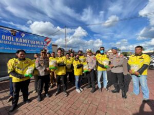 Satlantas Polres Kutai Barat Bagikan Beras kepada Driver Ojol dalam Apel Ojol Kamtibmas