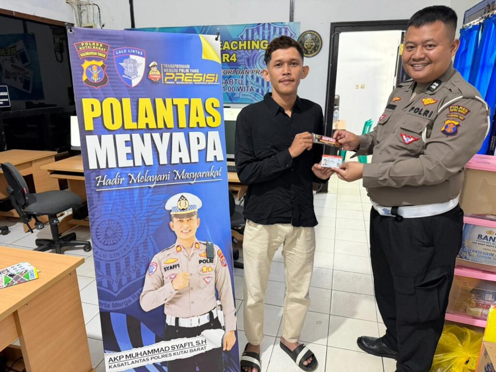 Sat Lantas Polres Kutai Barat melaksanakan kegiatan Polantas Menyapa sebagai upaya meningkatkan kualitas pelayanan publik kepada masyarakat yang mengakses layanan kepolisian di bidang lalu lintas.